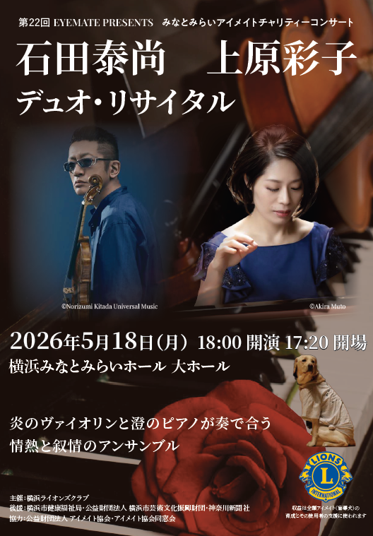 コンサートでの収益金の一部を公益財団法人アイメイト協会に寄付し、アイメイトの育成とその使用者の一助となっております。